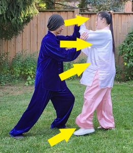 But just practicing the form by yourself, will not enable you to apply the martial applications in real combat situations. To achieve this objective, will require extensive practice of these applications with a wide variety of different sized partners. And for this reason, tai chi chuan practice entails a significant number of different 2 person interactive practices.